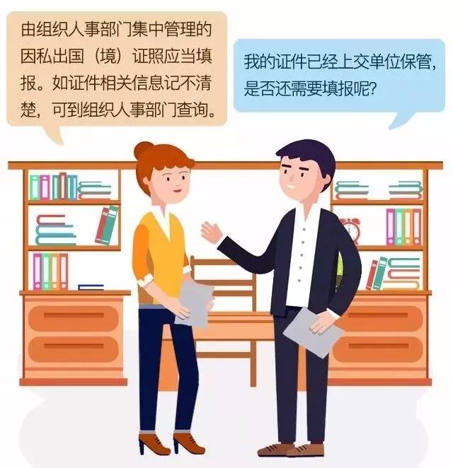 1.已经上交所在单位组织(人事)部门集中保管的因私出国(境)证件也需要报告。组织人事部门要指定专人做好服务工作,确保报告对象准确填报已上交组织保管的因私出国(境)证件。