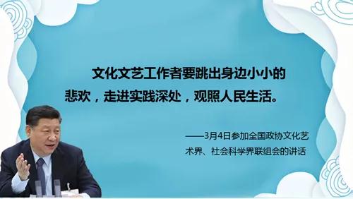 1.文化文艺工作者要跳出身边小小的悲欢,走进实践深处,观照人民生活。