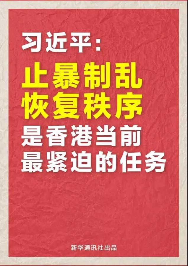 香港是中国的香港,是中国人民的香港。我们要向激进暴乱分子尤其是背后各种政治黑手发出更严厉警告:不要再幻想中国政府和14亿中国人民会吞下损害自己主权、安全、发展利益的苦果,不要再低估中国政府和14亿中国人民的意志、决心和能力。任何挑战“一国两制”原则底线的违法犯罪活动,都是注定会失败的,也都是必须付出沉重代价的!