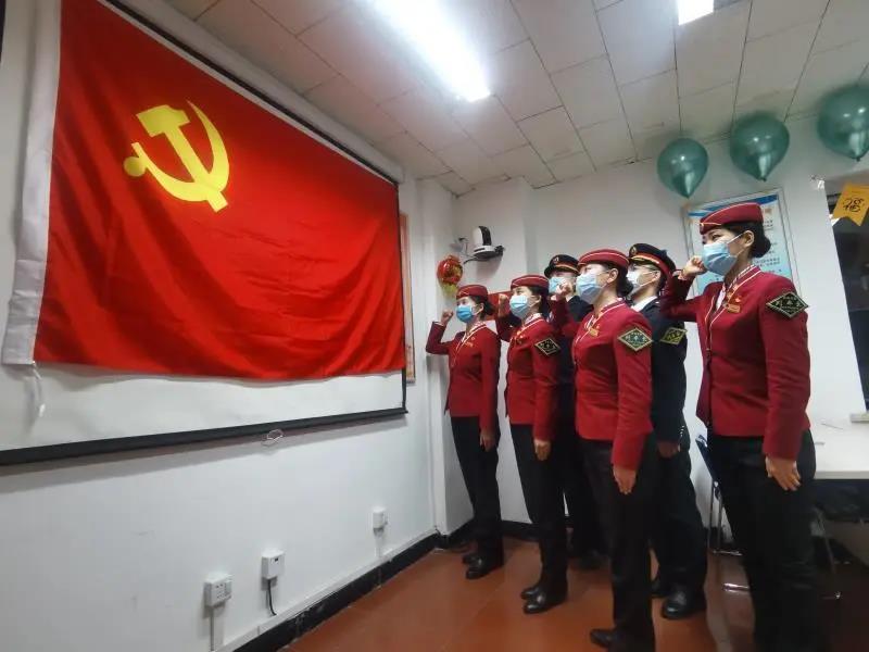 疫情期间,中国铁路北京局集团公司党委日均成立135个临时列车乘务党支部,积极开展抢运物资、护送医学专家、服务重点发热旅客、列车消毒等重点工作,让党旗高高飘扬在飞驰的列车上。