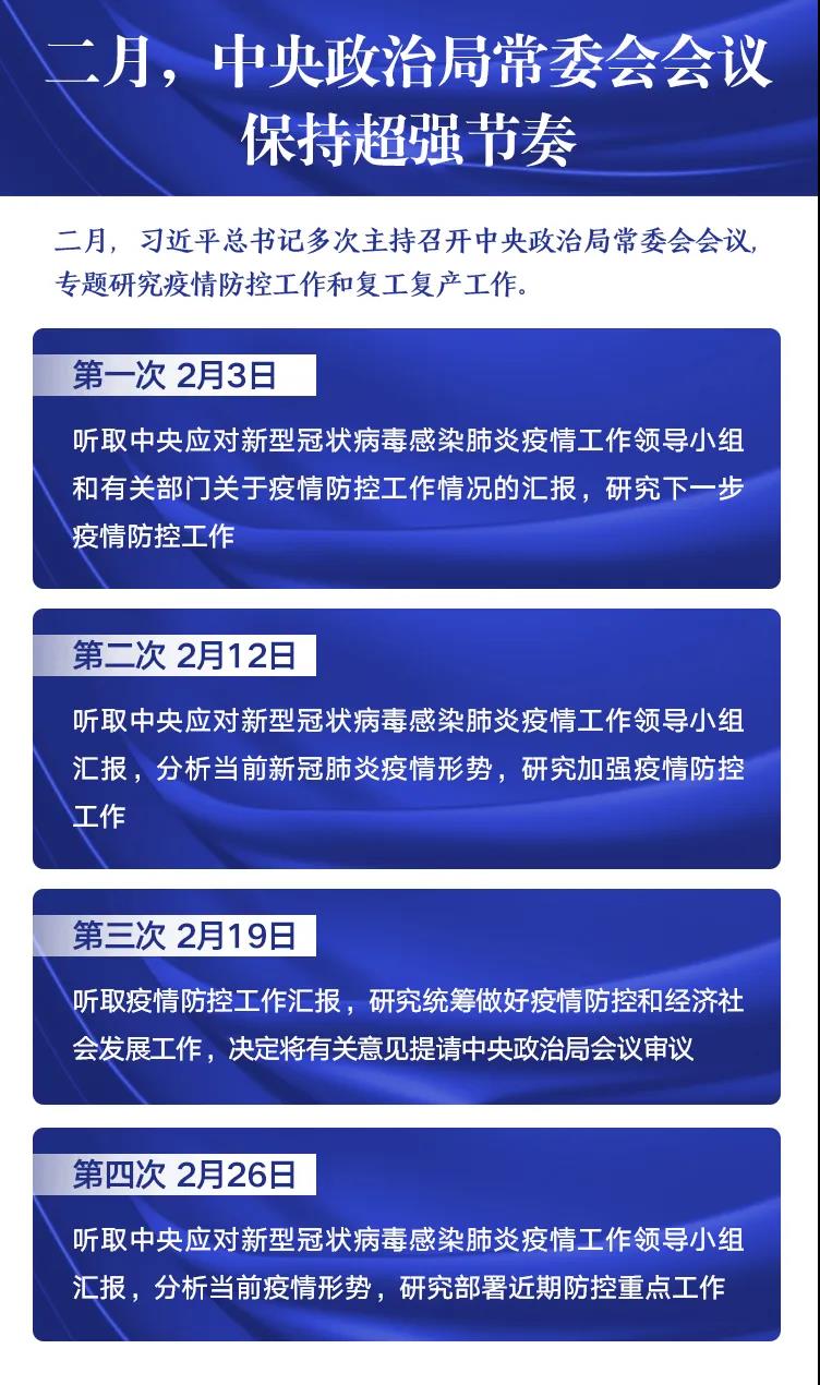 2月19日,习近平主持召开中央政治局常委会会议,研究统筹做好疫情防控和经济社会发展工作,决定将有关意见提请中央政治局会议审议。