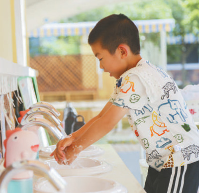 6月2日,上海宝山区乾溪幼儿园,小朋友在洗手。
