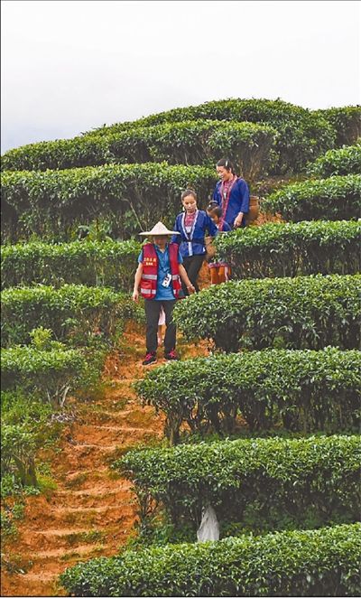 吴纯娟(前)与村民从茶山归来。