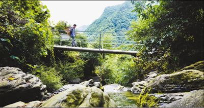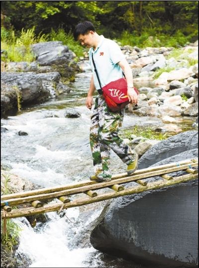 村民走过谷底新修的便民桥。