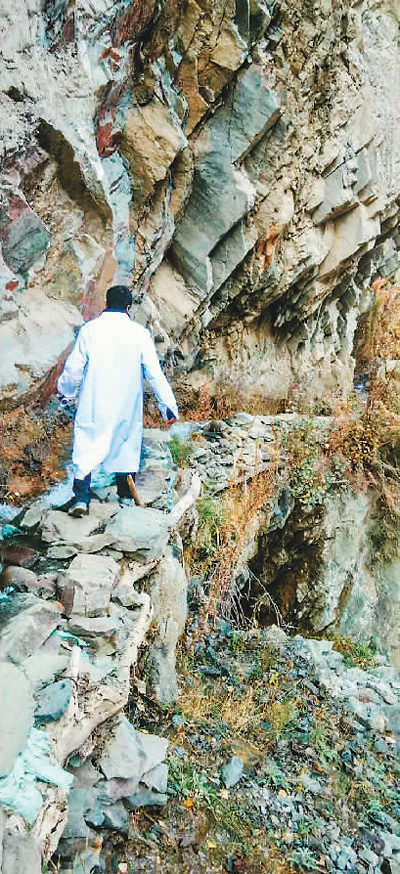 “最糟糕的还是遇到洪水淹路。”面对湍急的山洪,努克力只得爬上半山腰,在只能供一个人侧身攀行的悬崖上挪步。“下面是湍急的洪水,头顶上又随时掉落碎石,过去很多医生都曾在路上受过伤,甚至有的牺牲了生命。”努克力说。