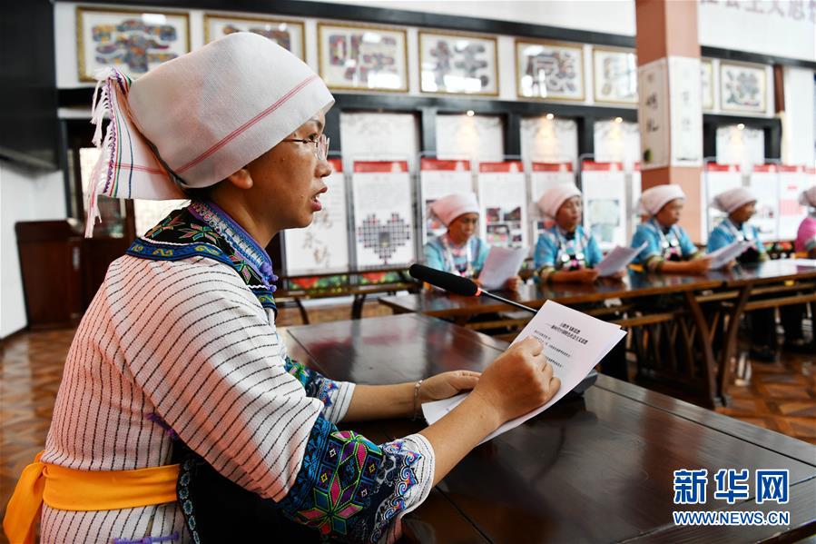 龙里县“金嗓子”志愿服务队用布依山歌十八调编了十多首山歌,既具象又押韵。队长罗丽萍说,山歌让党的声音走进山区、走近少数民族群众,也让群众在传唱中变成传播者。