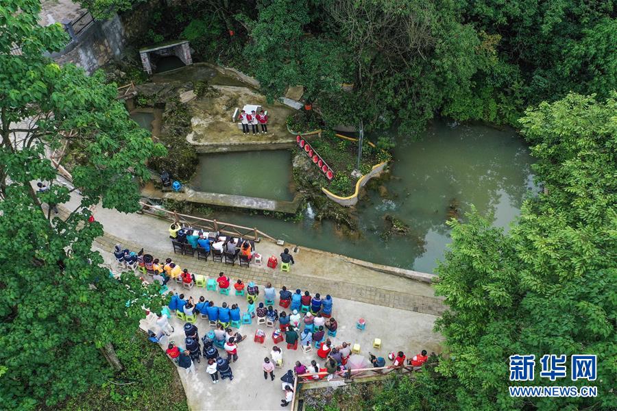 贵州省龙里县醒狮镇谷新村新时代文明实践站“萤火虫好声音”海选活动现场(7月2日摄,无人机照片)。 新华社记者 杨文斌 摄