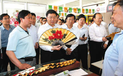 河南省委常委、洛阳市委书记毛万春(中)在栾川县调研旅游产品。