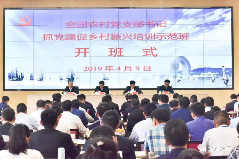 转载自“生态之音”微信公众号 4月9日,由中共中央组织部与农业农村部联合举办,浙江省委组织部承办的全国农村党支部书记抓党建促乡村振兴培训示范班在浙江生态文明干部学院开班。来自各省(自治区、直辖市)和新疆生产建设兵团,以及中央组织部、农业农村部定点扶贫县和对口支援革命老区的村党支部书记代表等近200名学员前来参训。作为培训的一个内容,浙江生态文明干部学院常务副院长刘宏伟为学员做了题为“习近平生态文明思想与浙江实践”的专题讲座,系统讲述了浙江省作为“两山”理念诞生地、美丽乡村发源地,践行习近平生态文明思想的浙江经验。