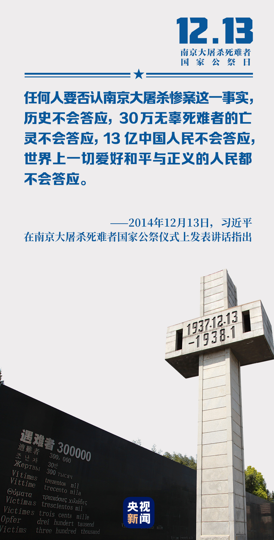 “牢记历史、不忘过去,珍爱和平、开创未来”,6年前的12月13日,习近平总书记在公祭仪式上的讲话深沉而坚定。