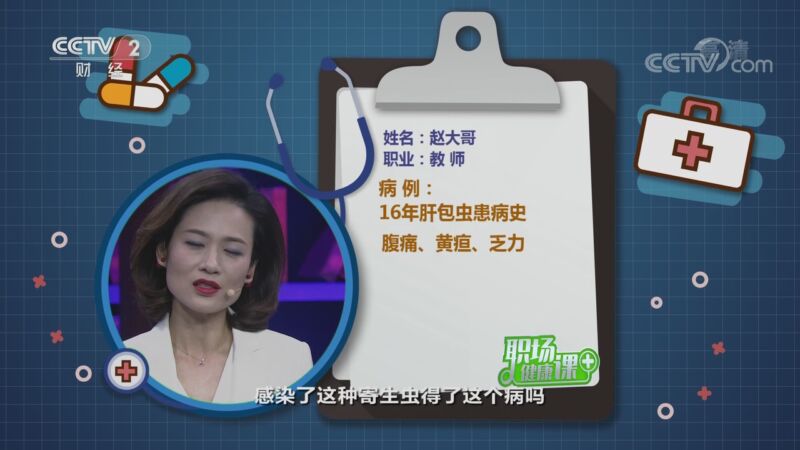 《职场健康课》以职场的亚健康状态和职业病为主要关注点,为广大观众带来切实有效的健康解决方案。节目以科学专业的态度做好健康科普,探讨职场健康话题,呼吁大家健康工作、快乐生活,力求为大家职场打拼保驾护航。