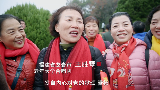 福建省龙岩市老年大学合唱团 王胜琴:心情真的很激动,好像一直唱不够的感觉,发自内心对党的歌颂、赞扬。