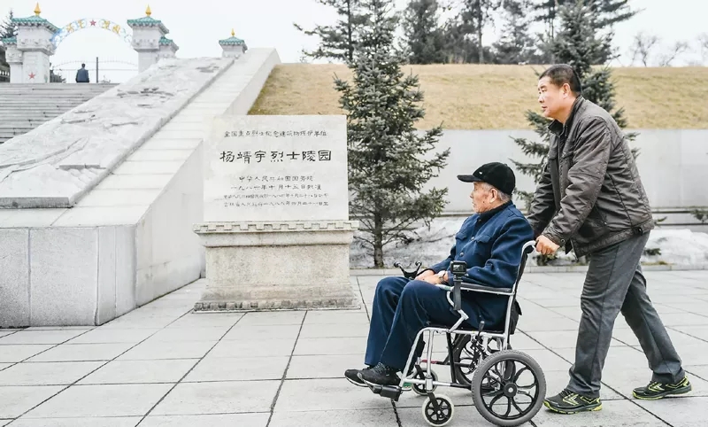 徐振明是吉林省通化市革命烈士陵园管理所首任所长,现年96岁。他先后参加过抗日战争、解放战争,1950年参加抗美援朝战争,曾荣立多次战功。他退伍转业到杨靖宇烈士陵园工作,父子两代默默守护英雄陵墓60余年,身体力行保护革命遗迹,讲述英雄故事,弘扬革命精神。图为徐振明(左)和儿子徐永军来到杨靖宇烈士陵园。 新华社记者 王昊飞/摄