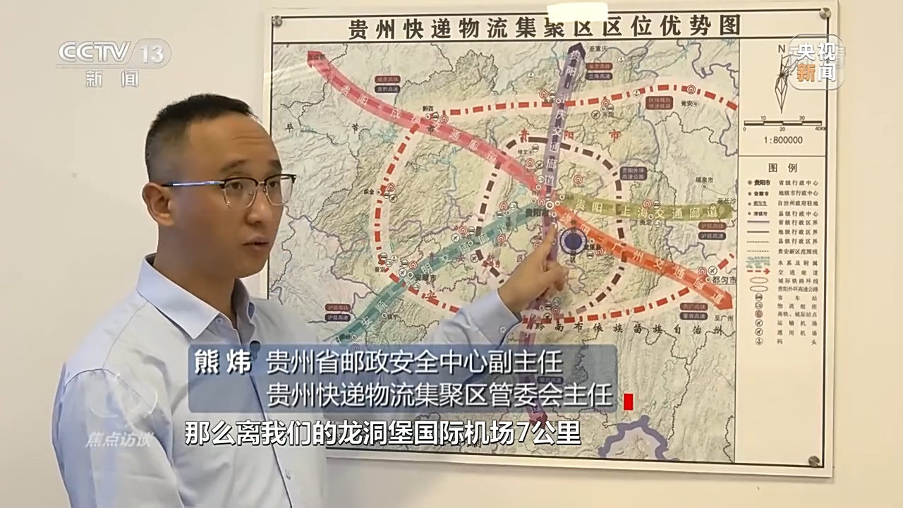 贵州省邮政安全中心副主任、贵州快递物流集聚区管委会主任熊炜说:“快递物流园区离龙洞堡国际机场7公里,离贵阳市区15公里,离改貌铁路枢纽站13公里,离县城贵广高铁北站11公里,区位优势非常得天独厚。”