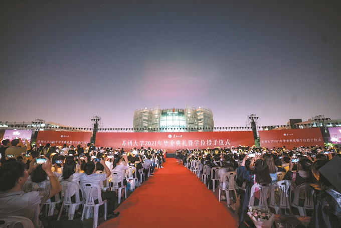 以高质量民生社会服务彰显高校情怀苏大温度。深化“我为群众办实事”实践活动、“两在两同”建新功行动,构建“一单三办”“三个一批”“马上就办”工作机制。未来校区首期正式启用、推进更充分更高质量就业计划等一批重点实事项目办进师生心坎,受到师生点赞。苏州大学国家大学科技园连续4年在江苏省科技企业孵化器绩效考评中获评“优秀(A)级”,累计孵化企业500余家。发起成立苏州市大院大所党建联盟,通过校地党建共同体深化科创协同,为苏州产业高端提升、创新集群建设贡献力量。落实中央、省委决策部署,坚持师生至上、生命至上,深入细致落实疫情防控各项举措,5000余名师生投身抗疫志愿服务。开展科研攻关,获批国家自然科学基金新冠基础研究专项2项,辐射防护科研团队助力方舱CT研发,智能高效环卫消毒机器人免费捐赠抗疫一线。成立抗疫专项基金,募集爱心捐款超360万元。校党委3次共划拨131万元专项党费支持疫情防控。4人获“全国抗击新冠肺炎疫情先进个人”表彰,5人荣获“全国卫生健康系统新冠肺炎疫情防控工作先进个人”称号,百余人获得省部级各类表彰、记功奖励。