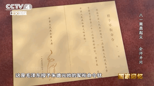 这是毛泽东授予朱德元帅的军衔命令状和一级八一勋章、一级独立自由勋章、一级解放勋章。