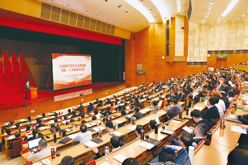 图为2022年11月15日,中央党校(国家行政学院)培训部举行学员学习宣传贯彻党的二十大精神交流会。