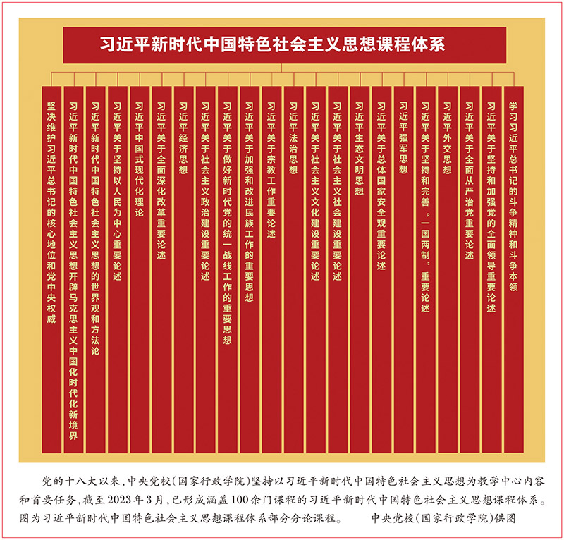 坚持不懈用习近平新时代中国特色社会主义思想凝心铸魂。讲授好、研究好、宣传好新时代党的创新理论,是党校承担的神圣职责。要从问题导向、理论贡献、实践价值、世界意义等方面,讲全讲准、讲深讲透习近平新时代中国特色社会主义思想,深入做好研究阐释工作。要及时跟进学习习近平总书记重要讲话精神,动态修订《习近平新时代中国特色社会主义思想教学大纲》,及时修订《习近平新时代中国特色社会主义思想基本问题》,不断完善相关课程体系,持续打造精品课程。要加强对党的创新理论的总体性研究,以重大课题为牵引,深入研究习近平新时代中国特色社会主义思想的科学体系、原创性贡献、哲理学理、理论渊源,同时坚持小切口、深着力,加强对“两个结合”、“六个必须坚持”、中国式现代化、全过程人民民主、中华文明与中国道路等重点议题的深度研究。