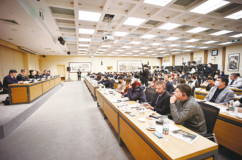 图为2022年10月27日,中央党校(国家行政学院)举办“讲好中国故事”主题沙龙,向来访的60多个国家的80余名外国记者宣介党的二十大精神并回答有关问题。