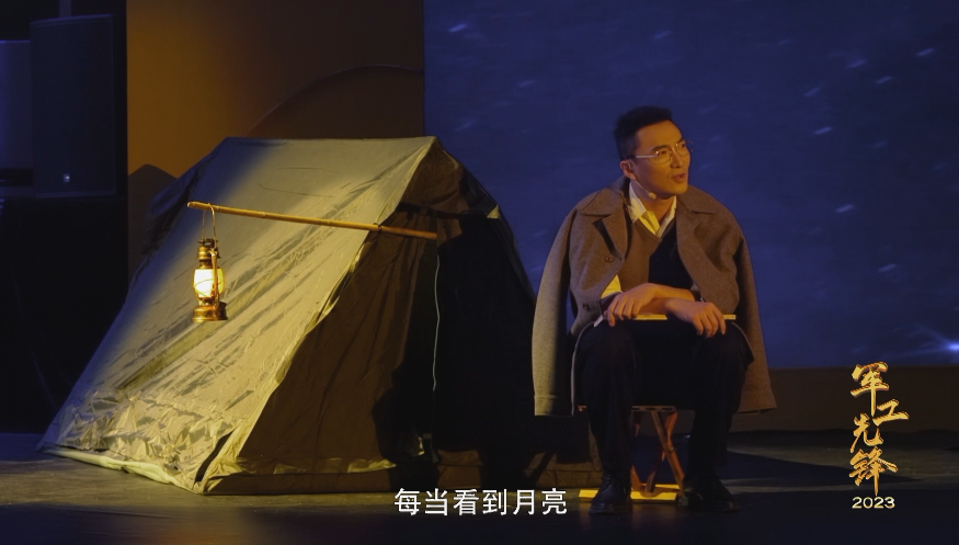 《军工先锋》以“思想+艺术+技术”融合传播为创作理念,不断探索艺术新边界,联袂中国歌剧舞剧院、中国传媒大学等单位打造多个“沉浸式话剧”。中国国家话剧院演员倾情演绎情景剧《一声召唤》,向“两弹一星”元勋特别致敬。情景剧《十分钟》《两顶草帽》《我的爸爸是罗阳》内容取自真人真事,高度还原了一个个鲜活的军工人物故事。访谈区的真实空间与戏剧的“第二空间”形成交互,让亲历者与话剧中的“自己”形成对望,传递情感共鸣、感染全场。