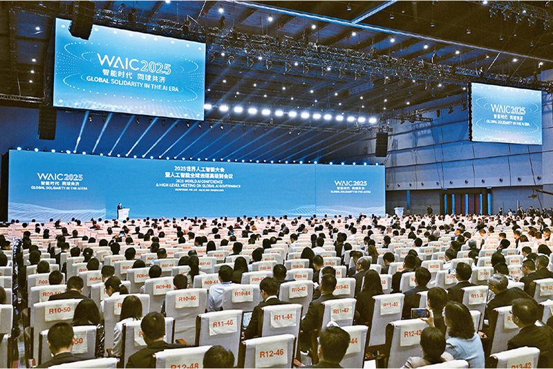 2025年7月26日,2025世界人工智能大会暨人工智能全球治理高级别会议在上海开幕。本届大会以“智能时代 同球共济”为主题,国内外嘉宾及人工智能产学研领域代表1000多人出席大会开幕式。大会发表《人工智能全球治理行动计划》。图为开幕式现场。