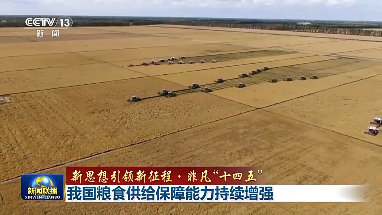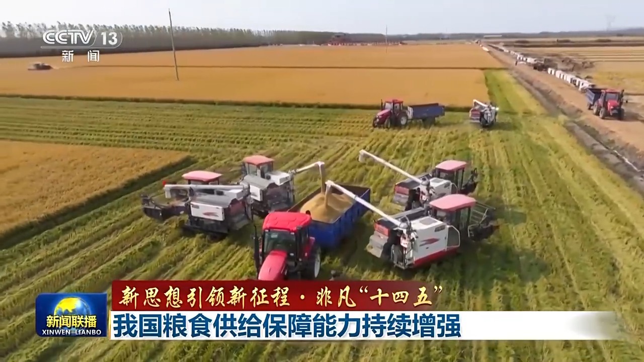 “十四五”期间,从物质基础到机制保障,我国全方位夯实粮食安全根基,粮食年产量稳定在1.3万亿斤以上,2024年首次迈上1.4万亿斤新台阶,14亿多中国人的饭碗端得更牢。