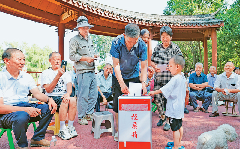 基层监督是党和国家监督体系的重要组成部分,是确保基层权力正确运行的重要保障。图为2025年7月19日,江苏省宿迁市泗洪县上塘镇垫湖村村民代表对镇、村干部工作作风和实绩进行评议。