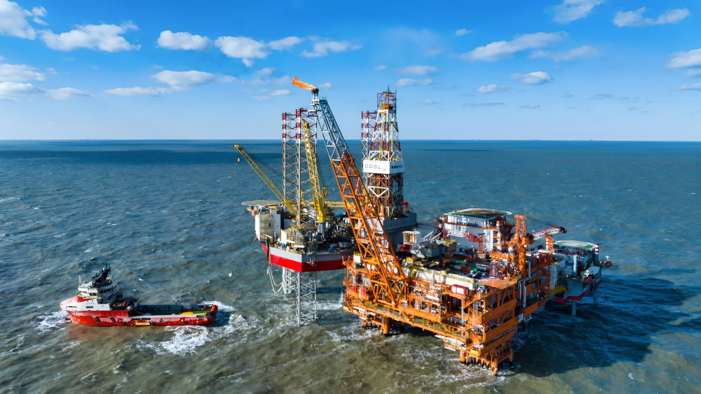 这是2025年2月8日拍摄的渤中26-6油田一期开发项目海上作业平台(无人机照片)。