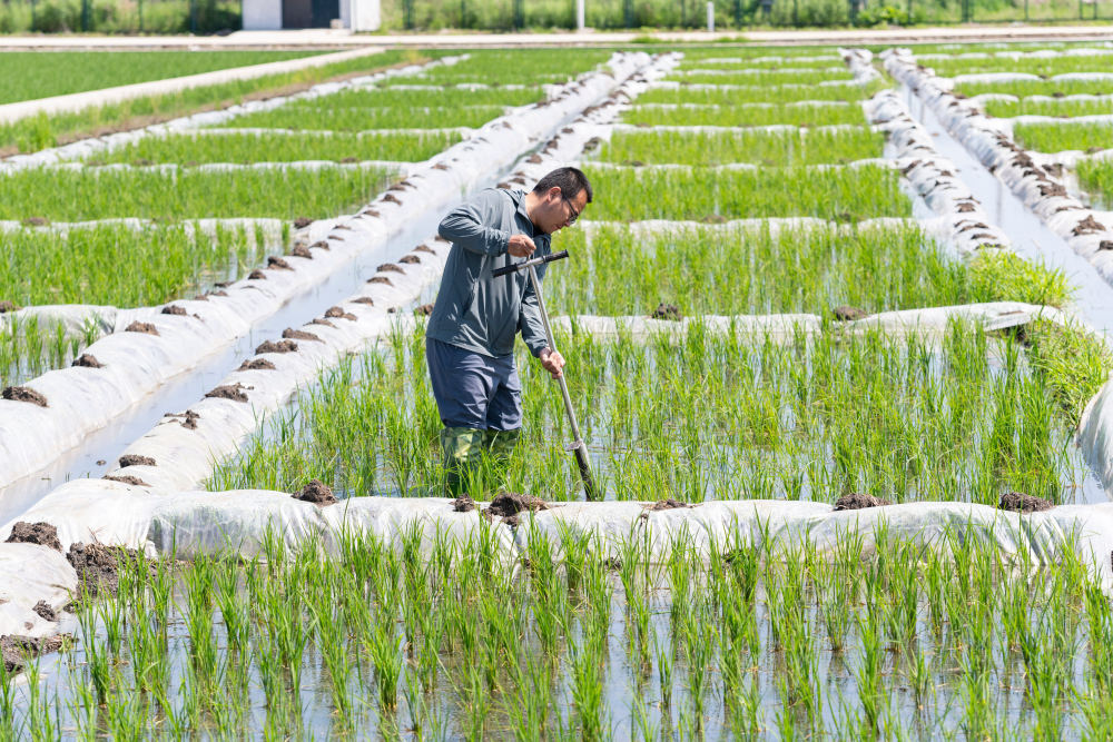2025年6月18日,在位于黑龙江省双鸭山市宝清县的中国水稻研究所北方水稻研究中心的试验田内,科研人员取耕层土样。