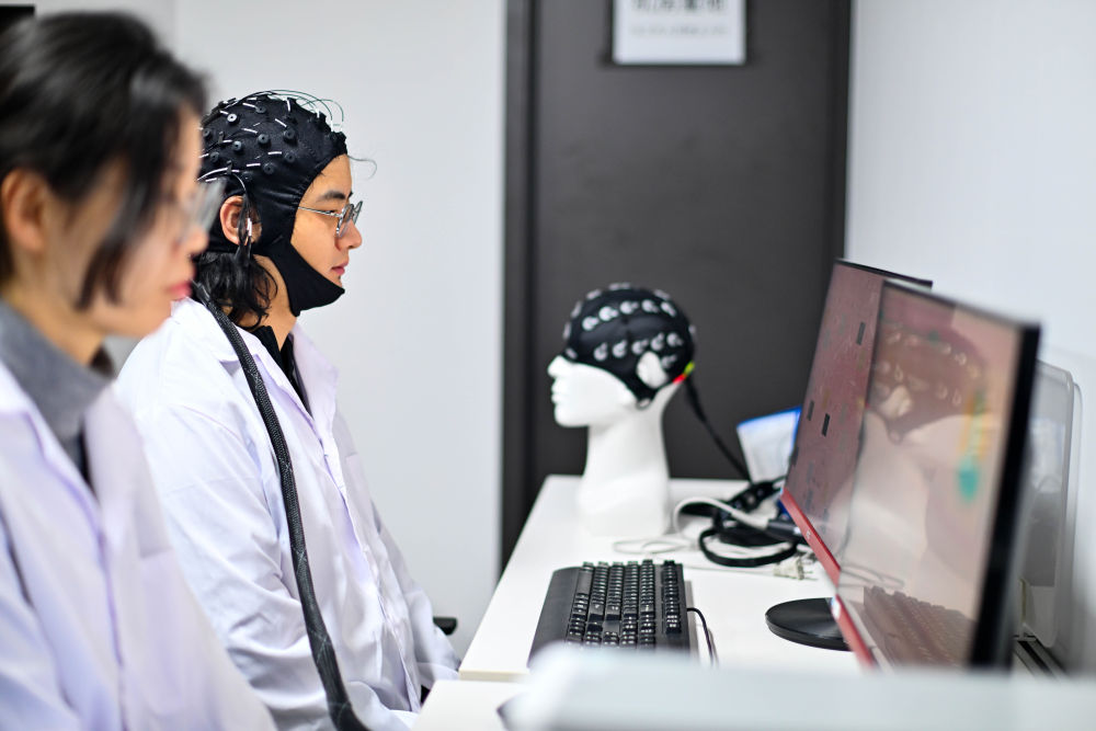 2026年2月27日,在位于天津滨海高新区的中电云脑(天津)科技有限公司,工作人员进行脑机接口技术测试。